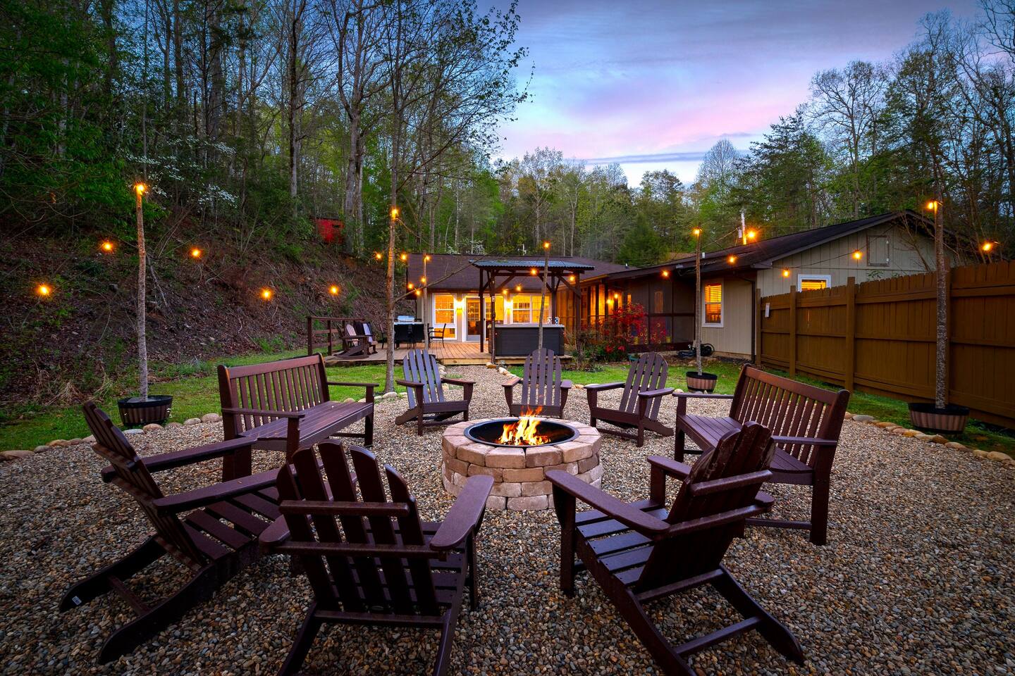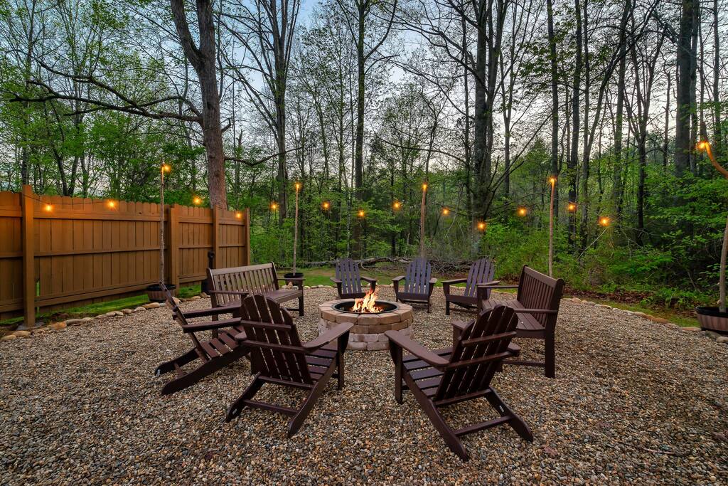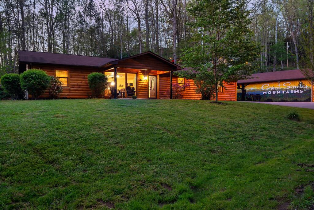 Amarillo by Morning Cabin is 4-bed, 3 bath, with a 5-hole mini-golf course & large train playset nestled perfectly in the arts & crafts district & 3.4 miles from the Gatlinburg Parkway! This 1 story, private mountain retreat sleeps 12 & is packed with unique activities designed for your entertainment including a serene backyard with firepit, large game room with, big buck hunter arcade, pool table, air hockey, log-wood poker table, arcade game, foosball & a stocked kitchen!