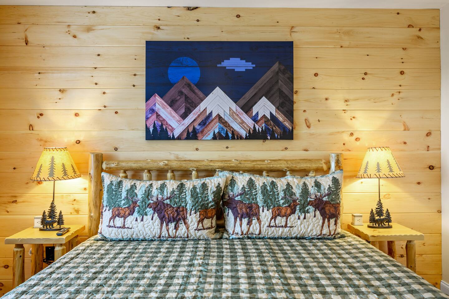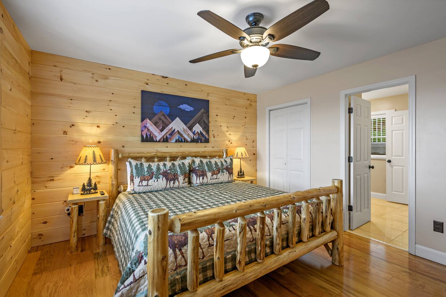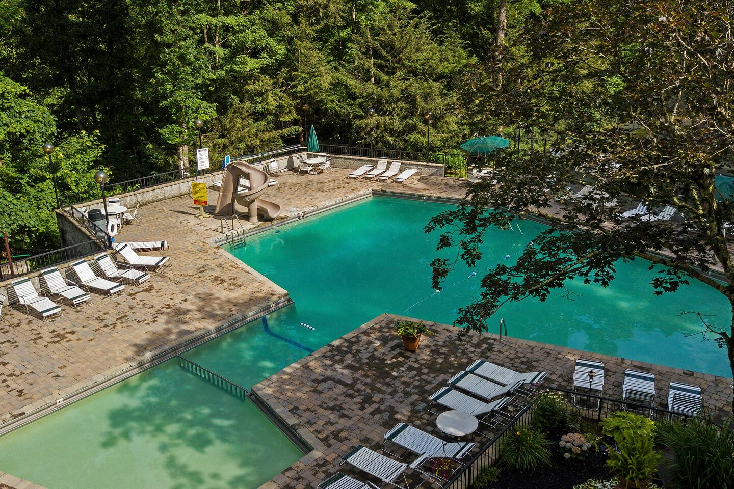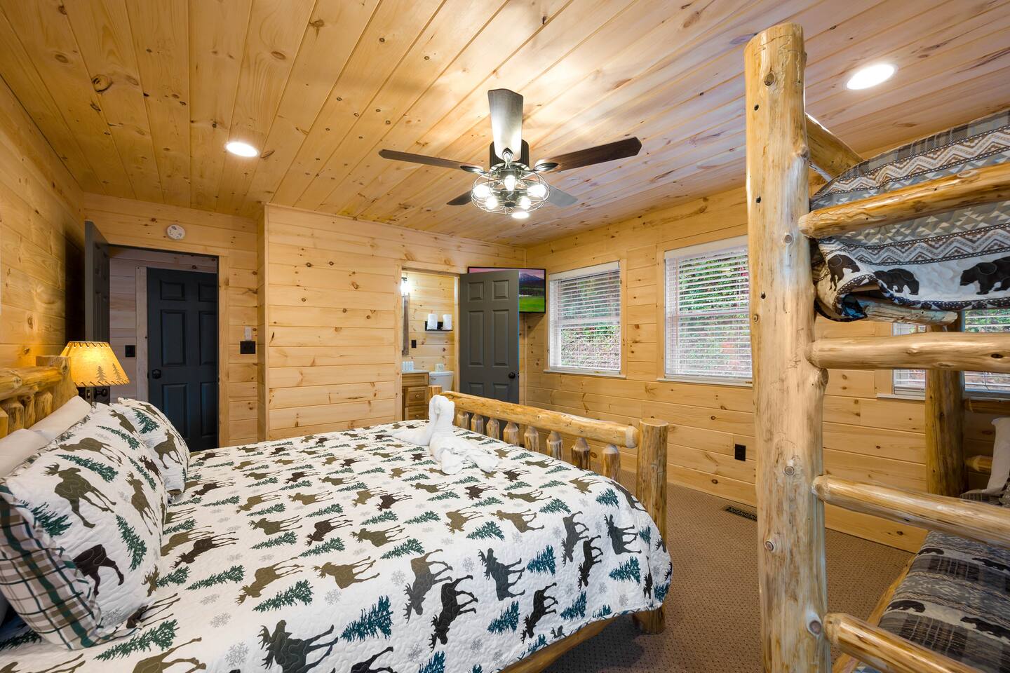 Plan your perfect holiday escape at our cozy cabin, where crisp mountain air, sparkling lights, and festive cheer set the scene for an unforgettable getaway. Gather by the fire, sip hot cocoa as the snow falls, and soak in the magic of the season from the porch. Your winter wonderland retreat is waiting. Come make it yours! LIVING ROOM – Awe-inspiring view right when you walk in the door of the Papa Bear Chalet living room stops you in your tracks! The panoramic views of Downtown Gatlinburg, Ober Gatlinburg Gondola & the Great Smoky Mountains are just stunning! The living room connects to the kitchen and dining room with beautiful, two-story knotty pine wood walls, a gas fireplace, and a dining area setting this great room apart and making it perfect for entertaining! It is warm, cozy, and ready for you to relax and enjoy the views or binge-watch from the 50" HD Flat Screen TV & plush leather couches. Fireplace season is October through March. EXCELLENT RECREATION AREAS You never need to leave the chalet to enjoy your vacation with an excellent recreation room and two private decks to enjoy! There is a classic pool table and whiskey barrel arcade game, board games, and 50” HD TVs! The lower floor of the chalet has a game room complete with: • Pool table • Custom whiskey barrel arcade video game (no charge) with 60+ classic arcade games • Assorted board games • Hot Tub with 7-person capacity outside the game room • 50” HD TV with full cable service • Large outdoor deck with 2 rocking chairs and a stunning view • Corn hole game for outdoor use Main floor: • Living room with 50” HD TV and full cable service & gas fireplace (available Oct-March) • Exterior deck with breathtaking panoramic views of the downtown, the Ober Gatlinburg Gondola & the Great Smoky Mountains BEDROOMS The chalet sleeps up to 12 guests with 4 bedrooms and two queen mattress pull-out sofas in the living room. Each bedroom is appointed with beautiful Smoky Mountain-themed quilts, handcrafted log frame beds, and cozy comforters. Two of the bedrooms are suites with full bathrooms attached to the bedrooms. Lower floor (sleeps 4 people): • Bedroom with King bed & HD TV with full cable service • Bedroom with Queen bed • Full bathroom with shower/bathtub combo Main floor (sleeps 4 people): • Master bedroom suite with King bed, HDTV with cable, and attached full bathroom with tub/shower combination • Living room with two queen pull-out sofa beds Top floor (sleeps 4 people): • Master Bedroom suite with King bed, bunk bed (2 twin beds), and HD TV with full cable service • Bathroom with tub and shower DECKS - 2 decks off the back of the chalet with dining table, premium seating, hot tub, and stunning views DINING ROOM – Rustic wooden dining table with seating for 8 right near the kitchen bar with seating for 4 more. The deck connected to the kitchen & living room also has an outdoor dining table perfect for 6 to enjoy dinner and two large high-back Adirondack chairs. KITCHEN – Well-appointed with all the major utensils, silverware, dishes, glasses, and cookware needed for you to create & serve gourmet meals. Electric stove, oven, microwave, refrigerator, dishwasher, Keurig coffee maker, drip coffee maker, toaster, blender, etc. ADDITIONAL AMENITIES – • Access to Chalet Village Facilities which include 3 different club houses, three separate pool facilities including water-slide, children’s play fountain, four tennis courts, two game rooms with pool table, foosball, air hockey, arcade games, children’s play structure, concession stands & more. These facilities are included with your stay, with seasonal swimming pools available from Memorial Day through Labor Day. • High-speed Wi-Fi • Pet friendly with a fee • Full-size washer and dryer access • Convenient location to downtown Gatlinburg, only 2.4 miles away and 2.2 miles to the entrance to Ober Gatlinburg! Easy access to great restaurants, shopping, Ripley's Aquarium, & the entrance to The Great Smoky Mountains National Park, all only a 7-10 minute drive (2.4 miles) away. • Convenient access to Pigeon Forge, less than 9 miles away, with access to the Gatlinburg bypass, which allows you to avoid the peak season traffic in Gatlinburg on your way to the Pigeon Forge attractions • Only 12 miles away from the entrance to Dollywood/Splash Country! • Just minutes from this chalet is the beautiful Gatlinburg Community Center - a complex with an indoor swimming pool, basketball court, ping pong, bowling alley, weight room, and showers. For a very reasonable fee, visitors are welcome to take advantage of this beautiful complex. • Convenient paved parking with plenty of space for 4+ standard-size SUVs. No RV or trailer parking permitted. • Heating & A/C • Weber gas grill – connected to the mainline so no worry about propane running out • We provide a set of starter supplies to allow you to get settled when you arrive. They include 2 trash bags, 2 dishwasher pods, a paper towel roll, a small liquid dish soap bottle, a toilet paper, a small bottle of shampoo, body lotion, body wash, conditioner and a soap bar for each bathroom, towels, and bed linens. They are designed so that you are all set when you arrive but not to last the entire trip. • Our close proximity to the Great Smoky Mountain National Park means there is lots of wildlife in our area - black bears, deer, wild turkeys, raccoons, coyotes, fox, and more! Black bears visit the cabin often in Spring, Summer and Fall. You may get lucky and catch a glimpse of one of these residents while enjoying the view from the deck. We also contract regular monthly pest services which treat for all pests from multiple types of bugs, mice, etc. Despite our regular treatments, given the proximity of the cabin to the park, it is possible these pests can temporarily enter the cabin. We immediately respond and treat if anything comes up and have found it is rare to come across an