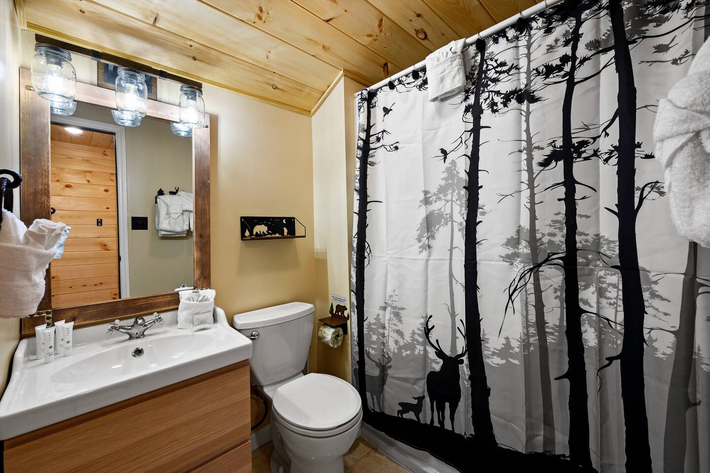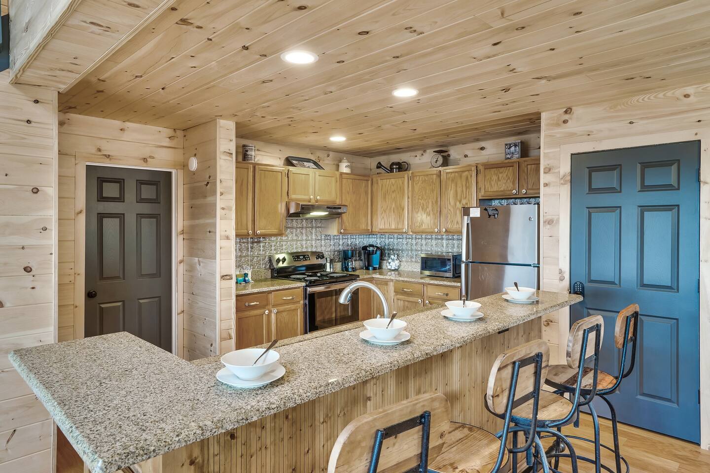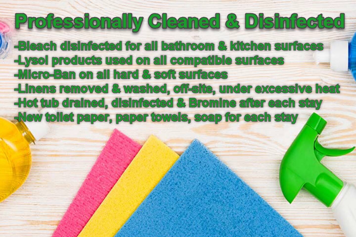 The HOA in our community requires a rental agreement to be signed for all short term stays. This is an easy process to complete electronically after your booking. We will send you a link to review and digitally sign prior to your check in. We have enhanced cleaning protocols post COVID-19 in order to improve our guest experience: • All hard & soft surfaces cleaned with Micro-Ban™ including: counters, vanities, sinks, floors, stair rails, cabinets, doors, furniture, beds, pillows, carpets, comforters, etc. throughout cabin. • Lysol™ is used thoroughly on all compatible surfaces to clean and disinfect • Bleach-based cleaners used in all bathrooms and kitchens, that allow use of chlorine products. • Linens (bedding, towels, etc) – removed & washed offsite in temperatures exceeding those recommended for laundry operations, then packaged until the housekeeping staff are ready to put them out for guests. • Hot Tub - Drained, cleaned, fresh Bromine added and refilled after every guest • Cabin inspected regularly after cleaning and inspectors perform additional applications of protective products in the cabin, such as MicroBan and Lysol. • Cleaning staff received additional education on disinfection protocols and are furnished with protective gloves, changing them for fresh pairs as needed during cleaning & disinfection of the home.