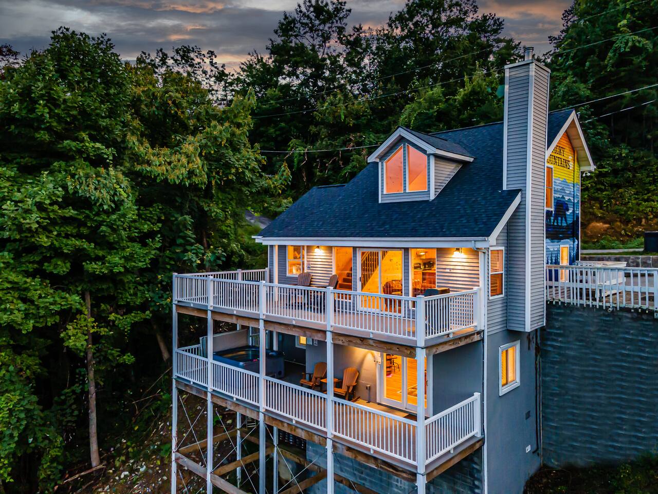 Our 4-bedroom, 3-bath Chalet provides a private mountain retreat, with stunning views of downtown, Ober Gondola & the Great Smoky Mountains. It is located less than 10 min (2.4 miles) from downtown Gatlinburg & the National Park entrance. It sleeps 12 people & packed with activities designed for your entertainment including hot tub, pool table, arcade game, access to 3 Club community pools, 2 large decks & kitchen stocked with all major cooking utensils