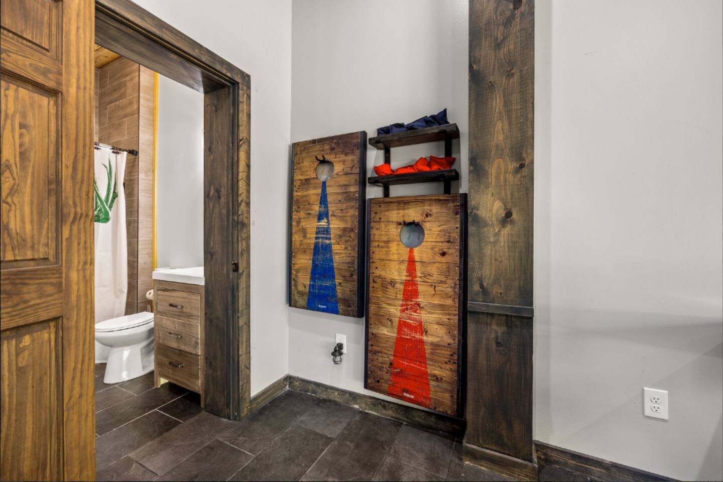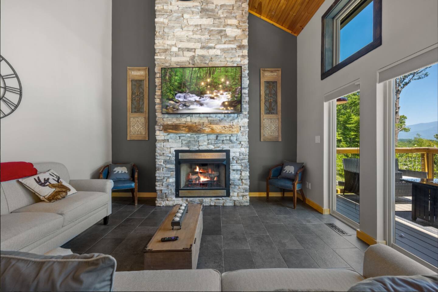 Plan your perfect holiday escape at our cozy cabin, where crisp mountain air, sparkling lights, and festive cheer set the scene for an unforgettable getaway. Gather by the fire, sip hot cocoa as the snow falls, and soak in the magic of the season from the porch. Your winter wonderland retreat is waiting. Come make it yours! The heart of the home is the chef-style kitchen, thoughtfully appointed with granite countertops, stainless steel appliances, and all the tools you need to cook everything from pancake breakfasts to holiday feasts. The open layout allows for easy conversation and connection, flowing seamlessly into the cozy dining and living areas, so the chef is never left out of the fun. Downstairs, the game room awaits with entertainment for every generation. Dive into friendly competition with air hockey, a classic Pac-Man arcade game, corn hole and a pool table. Large movie style TV allows you to relax and watch a show. This is where laughter echoes and memories take root. Step outside and you'll find just as much magic. Gather around the firepit for late-night s’mores and stories under the stars, or enjoy a laid-back cookout on the grill with family and friends. The expansive wrap-around decks offer stunning mountain views, ample seating, and the kind of peaceful backdrop that makes you want to stay awhile. We’re thrilled to welcome you to The Highlander, our newest cabin! With years of experience hosting guests in the Smokies and over 2,000+ 5-star reviews across our properties, we’re committed to providing an exceptional stay. While this is a new account for properties we manage on behalf of friends and family, rest assured that your experience will be nothing short of spectacular. KITCHEN - Step into a bright, beautifully designed kitchen, where clean lines, granite countertops, and stainless-steel appliances set the stage for delicious meals and memorable gatherings. Whether you're cooking up a sunrise breakfast or preparing a cozy family dinner, this kitchen features everything you need, a large fridge, modern range, dishwasher, and all the cookware at your fingertips. The open layout effortlessly flows into the adjoining dining and living areas, so whoever’s taking charge of the meal never misses a chance to connect with the group. SPACIOUS OUTDOOR AREA AND DECKS- The outdoor living spaces are designed to make the most of the peaceful Smoky Mountain setting. Expansive wrap-around decks offer panoramic views and multiple seating areas, perfect for sipping your morning coffee, enjoying meals al fresco, or relaxing in a rocking chair as the sun sets over the mountains. A picnic table sits just outside, ideal for family-style meals or casual snacks in the fresh mountain air. A classic grill is ready for mountain-style cookouts, while the firepit invites cozy evenings under the stars, sharing stories and roasting marshmallows. A private fire pit with chairs just steps away and a private hot tub with a view of the mountains awaits you. Whether you're watching for wildlife or simply soaking in the serene surroundings, every inch of this outdoor space is made for gathering, unwinding, and savoring the beauty of the mountains. RECREATION AREA - The Highlander’s recreation areas are designed to provide endless fun for guests of all ages. The spacious lower-level game room is flooded with natural light through an oversized glass garage door, creating a bright and inviting atmosphere. Challenge family and friends to a friendly match of pool, air hockey, or arcade-style basketball, there’s something here to spark friendly competition and laughter. Just steps away, the brand-new hot tub offers the perfect spot to unwind and soak in the stunning mountain views after a day of games and adventure. Whether you’re looking for high-energy fun or a relaxing retreat, The Highlander’s entertainment spaces are sure to make your stay unforgettable. The lower level of the cabin has a game room complete with: • Pool Table • Full-size Air Hockey table • Arcade-style basketball • Large TV • Hot tub • Firepit with seating • Large outdoor wrap-around deck • Full-size stacked washer and dryer Main Floor (2nd story) • Large living room with TV • Electric Fireplace • Large outdoor wrap-around decks with stunning views • Bedroom with TV and electric fireplace Top Floor (3rd story) • Bedroom with TV and electric fireplace BEDROOMS - Lower Level (Sleeps 6) • Futon in the Gameroom • Hall bathroom with walk-in shower • 2 Built-in twin bunk beds with TV Main Level (Sleeps 2) • King bedroom with TV and electric fireplace • Shared hall bathroom with tub/shower combo Top Floor (Sleeps 4) • King bedroom with TV and electric fireplace includes a nook with twin bunk beds. • Ensuite bathroom with walk-in shower ADDITIONAL AMENITIES – • Cozy Hot tub with stunning views • Air Hockey, Pool table, Pacman Arcade game, Pop-A-Shot and More! • High-speed Wi-Fi internet access • Washer and dryer available to use during your stay. • Heating & A/C • Parking for 3 standard-size vehicles. • We provide a set of starter supplies to allow you to get settled when you arrive. They include 2 trash bags, 2 dishwasher pods, a paper towel roll, a small liquid dish soap bottle, toilet paper, a small bottle of shampoo, body lotion, body wash, conditioner, and a soap bar for each bathroom, towels, bed, and linens. They are designed so that you are all set when you arrive, but not to last the entire trip. • Convenient location, less than 9 miles from downtown Gatlinburg, and access to all the area has to offer, which includes its great restaurants, shopping & Smoky Mountain National Park. • Only 14 Miles to Pigeon Forge & 13 miles away from the entrance to Dollywood/Splash Country! • Our proximity to the Great Smoky Mountain National Park means there is lots of wildlife in our area - black bears, deer, wild turkeys, raccoons, coyotes, foxes, and more! Black bears visi