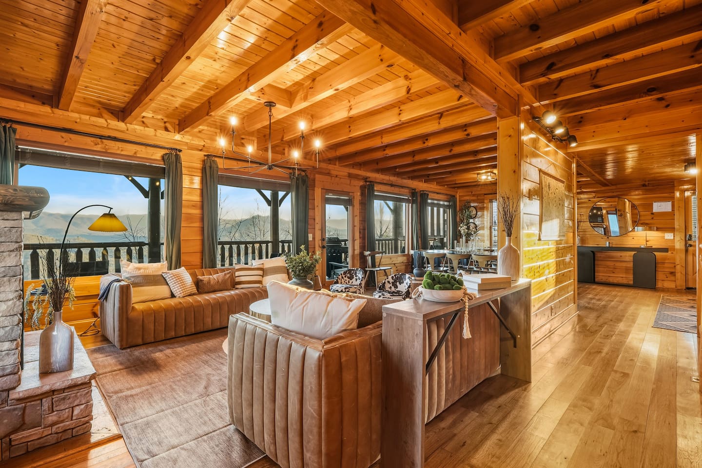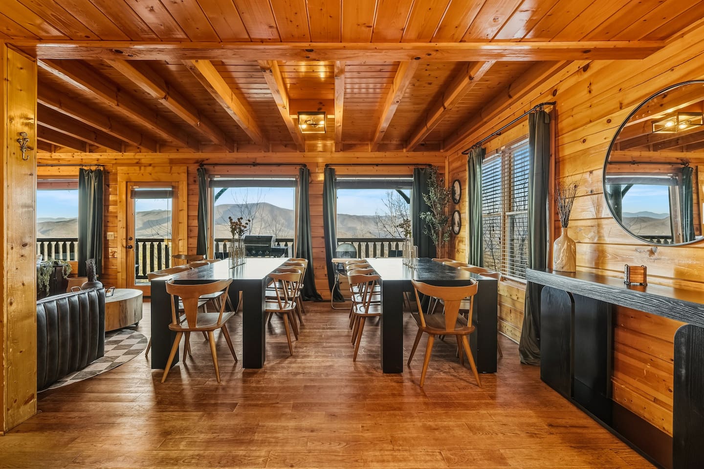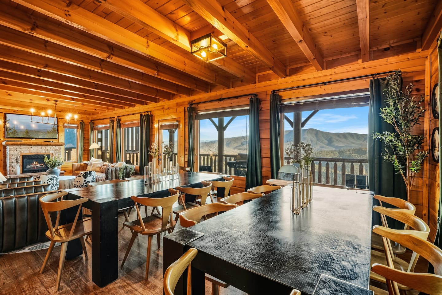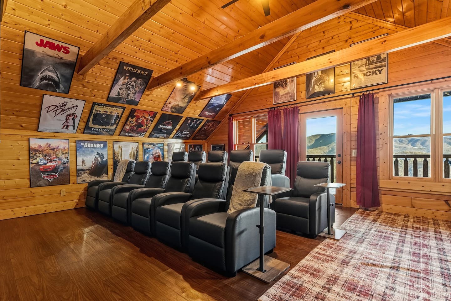 Your ultimate Smoky Mountain family getaway at our Chapel Ridge cabin at the Preserve! Sleeps 20 with towering windows, breathtaking panoramic views, private theater, and four expansive decks. Relax in the private hot tub under a starlit sky, play games in the rec room, or gather for meals in the spacious kitchen and dining areas. Ideal for families, reunions, and multi-generational vacations looking for comfort, fun, and mountain serenity.